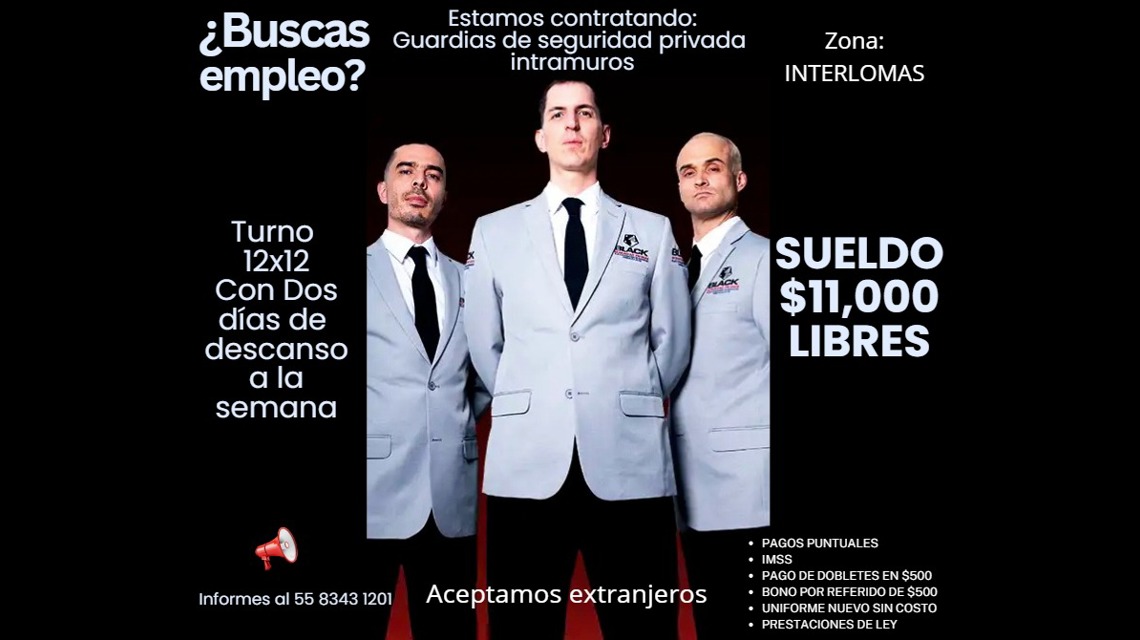 Si cuentas con experiencia o interés en desarrollarte como guardia de seguridad y buscas una oportunidad estable en turnos definidos, postúlate por este medio y envía tu información para iniciar el proceso de selección.